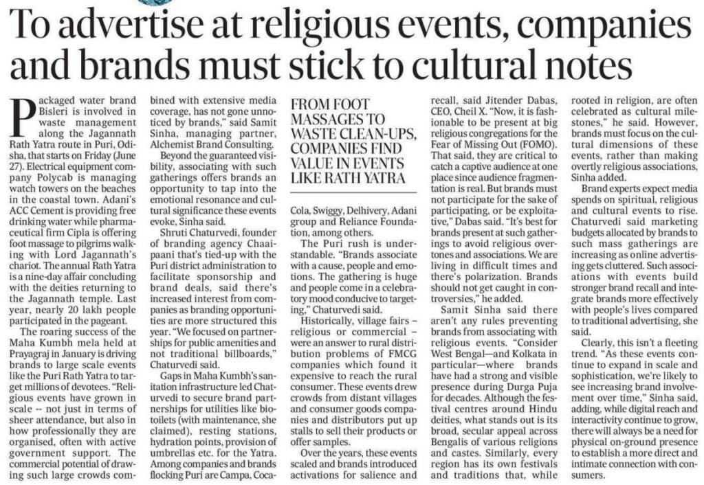 The Jagannath Puri Rath Yatra is one of India’s largest and most significant religious festivals, attracting over 15 million pilgrims annually. Chaaipani aimed to create authentic, service-led brand engagement that stood out amid intense competition and traditional sponsorship noise. Madchatter’s challenge was to secure wide-ranging media visibility and position Chaaipani as a pioneering brand partner for the festival’s evolving marketing landscape for brand activation.